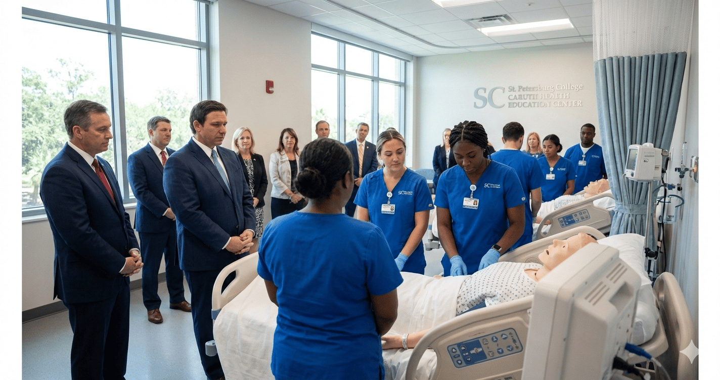 Florida Commissioner of Education Stasi Kamoutsas and State University System Chancellor Ray Rodrigues joined him for the announcement. St. Pete College was specifically highlighted as one of the institutions doing the work to address the nationwide nursing shortage.